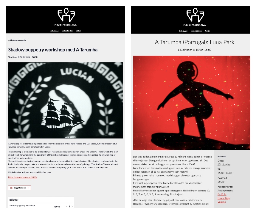 A Tarumba presents Luna Park in October in Norway, at Festival Figur i Fosskleiva 2023, and will direct a Shadow Puppetry Workshop!