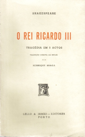 Título: O Rei Ricardo III: Tragédia em 5 Actos