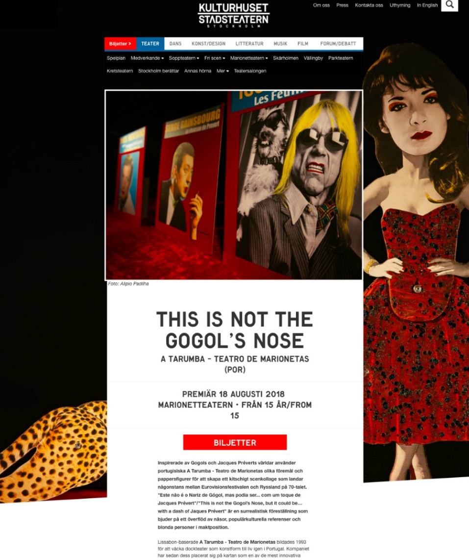 A Tarumba – Teatro de Marionetas apresenta em Estocolmo, no Pop up Puppets International Puppet Theatre Festival, 'Este não é o Nariz de Gógol, mas podia ser... com um toque de Jacques Prévert', a 18 de Agosto no Kulturhuset Stadsteatern!