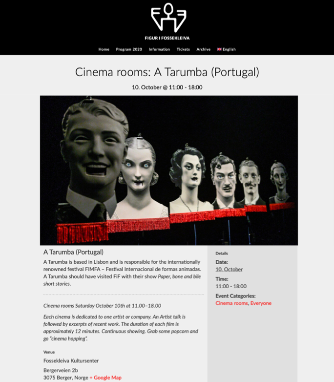 Em tempos normais apresentaríamos o nosso espetáculo 'Curtas de Papel, Osso e Fel' no Festival Figur i Fosskleiva 2020 - International Festival of Puppetry and Visual Theatre, a 10 de outubro, na Noruega.